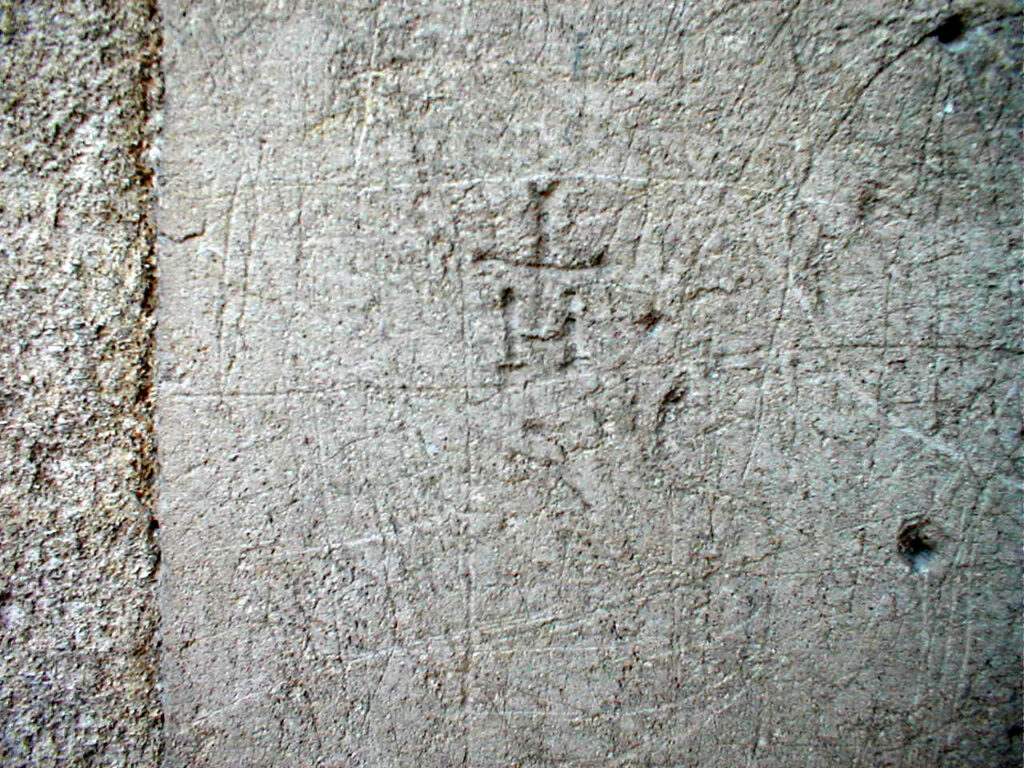 The Danish artist Asger Jorn had noticed some graffiti scratched into the porch at the church in Damville during a visit in 1946. Having noticed similar scratchings in Scandinavia at the cathedrals in Ribe, Lund, and Trondheim, Jorn decided to study the phenomenon. He was able to make a trip to Normandy in 1961 with his photographer Gérard Franceschi. They were able to record a number of such markings in Eure and Calvados districts, but not elsewhere.